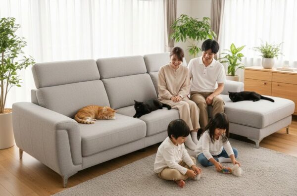 ラムース等の高機能素材を使用したソファーは、一般的な布製ソファーに比べて価格が高くなる傾向があります。しかし、数年ごとに買い替えるコストと手間を考えれば、長期的な投資価値は十分にあります。